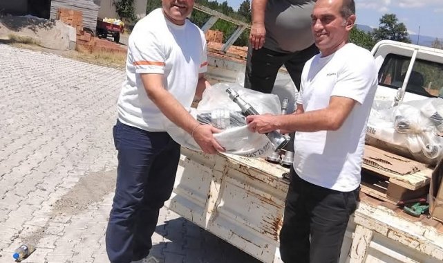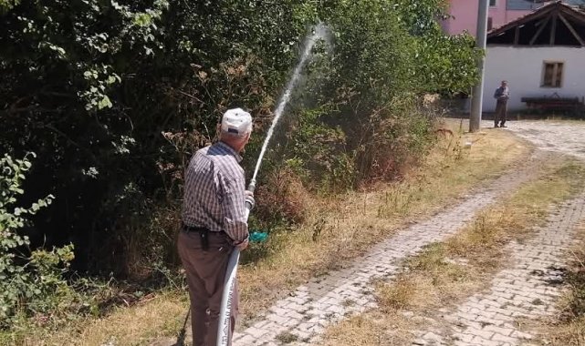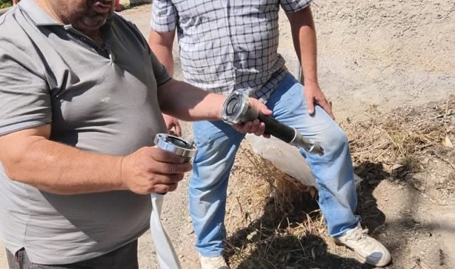 Dağıtım esnasında köy muhtarlarına ve vatandaşlara yangın hortumlarının nasıl kullanılacağı uygulamalı olarak anlatıldı.