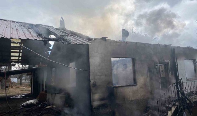 Çorum'un İskilip ilçesine bağlı Sorkun köyünde çıkan yangında, bir ev tamamen yanarak kullanılamaz hale geldi.