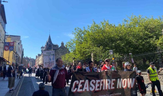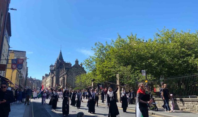 İskoçya'nın başkenti Edinburgh'ta 1948'de İsrail Devleti'nin kurulmasının ardından yüzbinlerce Filistinlinin zorla yerlerinde edilmesiyle sonuçlanan Nakba (Büyük Felaket) Günü dolayısıyla yürüyüş düzenlendi. Nakba'nın 77. Yıldönümü çerçevesinde bir araya gelen çok sayıda Filistin destekçisi, Gazze Şeridi'ndeki katliamın durdurulması için İskoçya Parlamentosu'na yürüyerek, İsrail'in sürdürdüğü katliama sessiz kalan milletvekillerine tepki gösterdi. Sağlık çalışanlarının da destek verdiği yürüyüşte, "Soykırımı durdurun", Şimdi Ateşkes" pankartları taşıyan göstericiler, "Adaletin olmadığı yerde barış olmaz", Özgür Filistin", Nehirden Denize Filistin özgür olacak" sloganları attı.