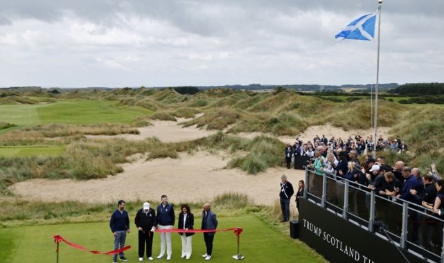 ABD Başkanı Donald Trump, özel bir ziyaret kapsamında dört gündür bulunduğu İskoçya'da ziyaretinin son gününde kendisine ait yeni golf tesisinin açılışını gerçekleştirdi. Tesisin açılışı sırasında Trump'a eşlik eden İskoçya Başbakanı John Swinney, açılış öncesinde Trump ile özel bir görüşme gerçekleştirdi. Görüşmede, ABD tarafından İskoç viskisine uygulanan yüzde 10'lük gümrük vergisi ile Gazze'de yaşanan açlık krizi nedeniyle yapılacak insani yardım konuları konuşulduğu bildirildi. Görüşmenin ardından golf tesisinin açılışını gerçekleştirmek için kameralar karşısına geçen Trump açıklama yaptı. John Swinney'e teşekkür ederek ve yeni golf tesisinin harika olduğunu söyleyerek sözlerine başlayan Donald Trump, "Bugün özel bir gün olacak, bu yıl özel bir yıl olacak, bu 10 yıl özel bir on yıl olacak" dedi. Kalabalığa "İskoçya'yı seviyoruz" diyen Trump, bir basın mensubunun "İsrail Başbakanı Binyamin Netanyahu'ya ne söylemek istersiniz?" demesi üzerine "İşleri yoluna koymak için birlikte çalışıyoruz" ifadelerini kullandı.