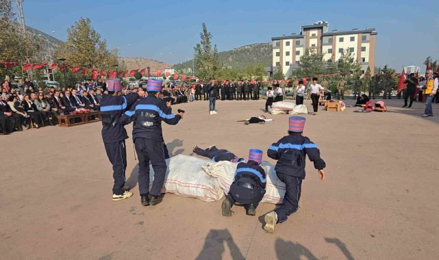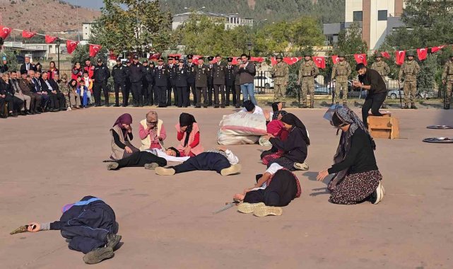 Törende 'Bayrak' şiirini okuyan öğrenci İkraTürkel'i İlçe Kaymakamı Soylu tebrik ederek alnından öptü. Törende, Kur'an-ı Kerim tilaveti ve şehitler için dualar edildi. İlçenin kurtuluş anı sembolik olarak canlandırıldı.