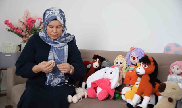 Gaziantep'te yaşayan 34 yaşındaki ev hanımı Ayşe Çalışkan, 6 çocuğuna işlediği oyuncaklarla bakıyor.