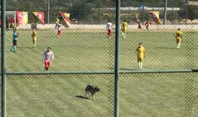 Keçiborlu Belediyespor'un, 1922 Akşehirspor ile oynadığı Bölgesel Amatör Lig maçının 2. dakikasında sahaya giren köpek nedeniyle karşılaşma kısa süreliğine durdu.