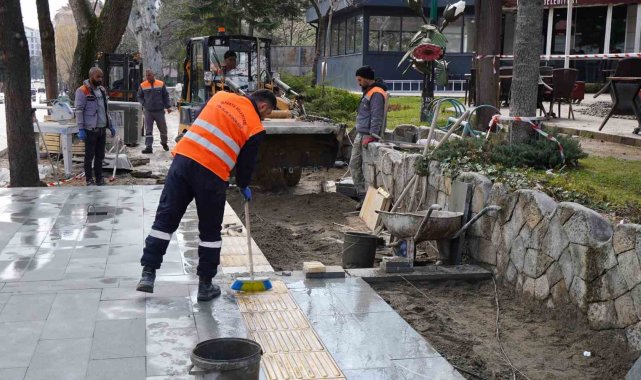 Isparta Belediyesi, Kutlubey Mahallesi 6 Mart Caddesi üzerindeki Atatürk Parkı altındaki kaldırımda yenileme çalışması gerçekleştiriyor. Çalışmalarda kaldırımdaki eskiyen ve deforme olan andezit taşları sökülürken, yeni andezit taş döşeniyor.