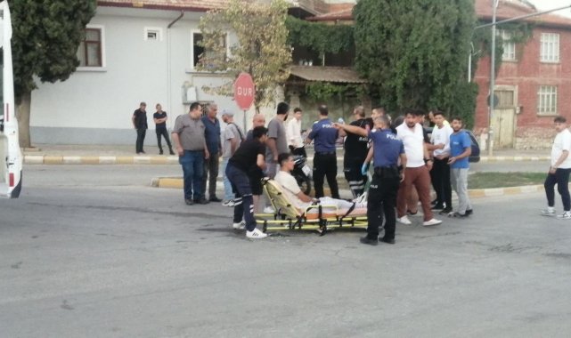 Isparta'nın Yalvaç ilçesinde hafif ticari araç ile motosikletin kavşakta çarpışması sonucu motosiklet sürücüsü yaralandı.