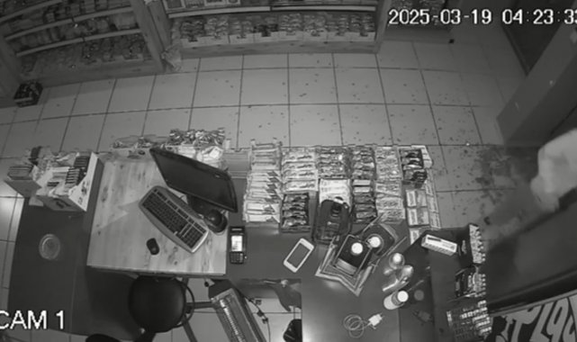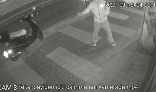 Güvenlik kamerası görüntülerinde, B.Ç.'nin elindeki taşlarla iş yerinin camını kırarak içeri girdiği ve dolaptan içki aldıktan sonra hızla uzaklaştığı anbean kaydedildi.