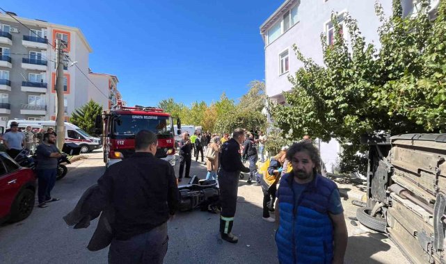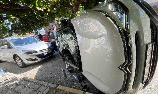 Isparta'da iki otomobil ve motosikletin karıştığı kazada 5 kişi yaralandı. Yan yatan otomobilde sıkışan yaralılar, itfaiye ekiplerince kurtarıldı.