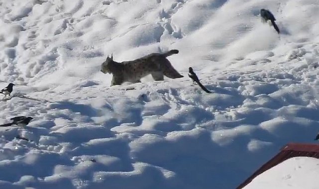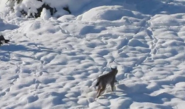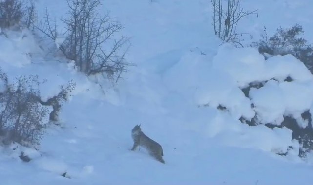 Erzurum'un İspir ilçesinde yiyecek bulmak için köye inen vaşak cep telefonu kamerası ile görüntülendi.