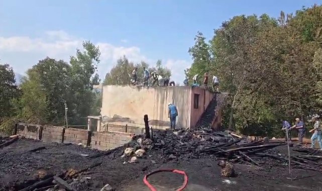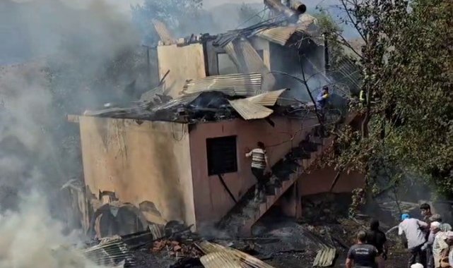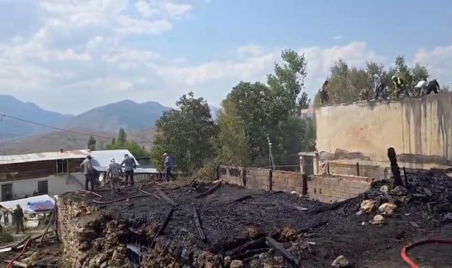 İspir'de çıkan yangında 3 ev ve 2 ahır kül oldu