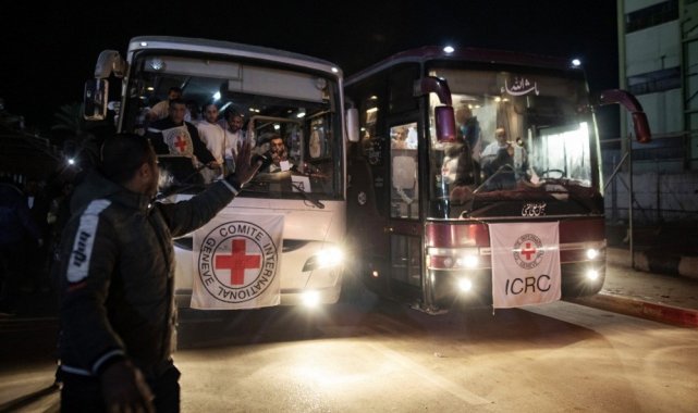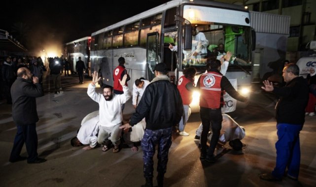 İsrail'in gece saatlerinde ateşkes anlaşması çerçevesinde serbest bıraktığı 641 Filistinli mahkumdan 456'sı Kızılhaç'a ait otobüslerle Gazze Şeridi'ne geldi.