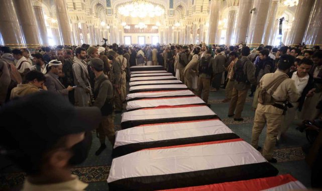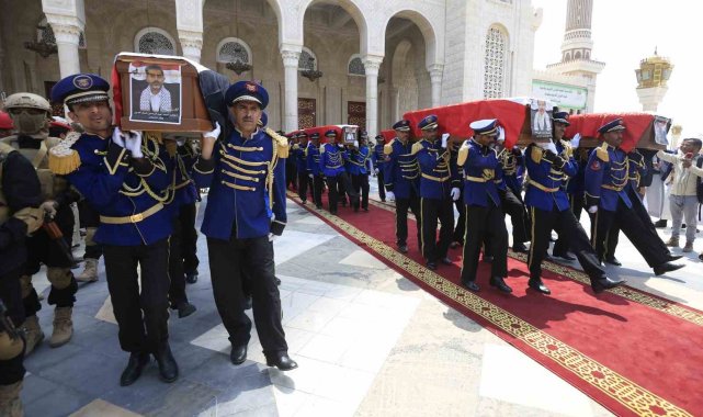 İsrail'in 28 Ağustos'ta Yemen'e düzenlediği saldırıda hayatını kaybeden Husi liderlerinden Ahmed Galib el-Rahvi'nin de aralarında bulunduğu 12 üst düzey yetkili için cenaze töreni düzenlendi.