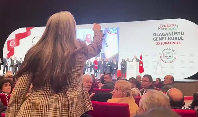 İstanbul 1 No'lu Barosu'nun Olağanüstü Genel Kurul toplantısında yabancı hukuk temsilcilerinin Türkiye'yi hedef alan konuşmaları sırasında yerinden kalkan kadın avukat, "Emperyalizmin temsilcileri mi bize insan haklarını öğretecek? İnsan hakları bu mu, bu adamlar mı insan haklarını öğretecek. Filistin için tek laf etmeyen biri hangi hukuktan bahsediyor?" diyerek tepki gösterdi.