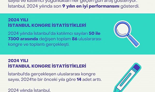 İstanbul, 2024'te katılımcı sayıları 50 ila 7 bin 300 arasında değişen 86 uluslararası kongreye ev sahipliği yaparak, dünya kongre şehirleri sıralamasında dünyada ve Avrupa'da birer sıra daha yukarı çıktı.
