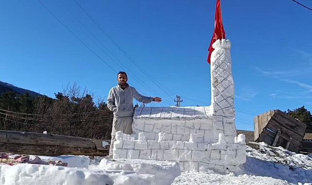 Sivas'ın ücra köyünde Kız kulesi karşısında çay içmek isteyen çocuklar, hayallerini kardan yaptıkları Kız kulesi ile gerçekleştirdi.