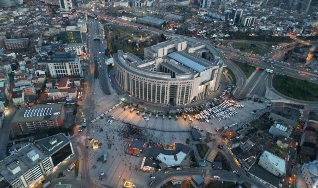 İstanbul Adalet Sarayı önünde alınan güvenlik önlemi havadan görüntülendi