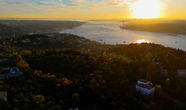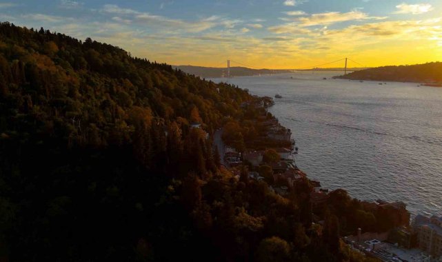 Kış mevsiminin habercisi olan sonbahar, İstanbul Boğazı boyunca eşsiz manzaralar sunarken, özellikle Kandilli çevresinde dron ile kaydedilen görüntüler eşsiz bir atmosferi gözler önüne serdi. Boğaz'ın mavisi, gün batımının altın tonlarıyla bütünleşirken, bölgedeki ormanlık alanların sarı ve kızıl yaprakları tabloyu andıran bir görünüm oluşturdu. Fatih Sultan Mehmet Köprüsü'nün görkemli siluetiyle birleşen bu manzara, İstanbul'un doğal güzelliklerinin yanı sıra tarihi dokusunu da ön plana çıkartı. Şehrin yoğunluğundan uzak konumuyla Kandilli, Boğaz'ın huzurlu yüzünü yansıtan en özel semtlerden biri olarak öne çıkıyor. Üsküdar'ın kıyı şeridinde sıralanan tarihi yalılardan bazıları da bölgeye ayrı bir estetik katıyor. Kıbrıslı Yalısı, İsmail Paşa Yalısı, Abud Yalısı, Kont Ostrorog Yalısı, Hadi Semi Yalısı ve Edib Efendi Yalısı hem mimari zarafetleri hem de geçmişten günümüze uzanan tarihi özellikleriyle dikkat çekiyor.
