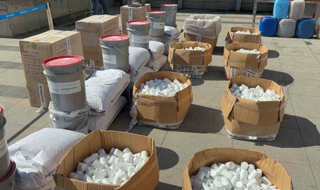 Zanlıların adreslerinde yapılan aramalarda, 696 kilo 650 gram sıvı metamfetamin, 67 kilo 700 gram metamfetamin, 44 kilo 500 gram skunk, 1 milyon 572 bin uyuşturucu hap, 595 kilo 550 gram kimyasal katkı maddesi ele geçirildi.