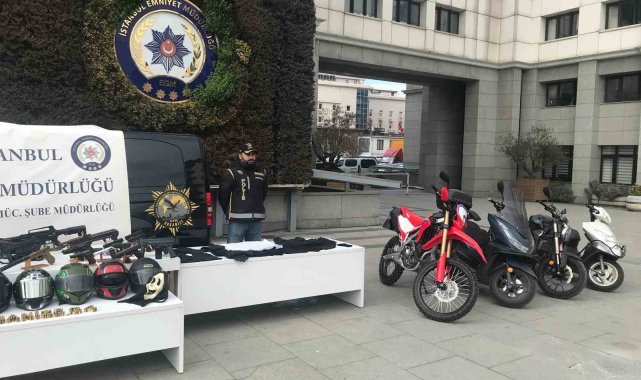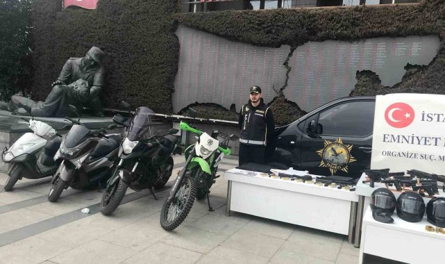 İstanbul'da çete operasyonlarında ele geçirilen silahlar ve motosikletler sergilendi