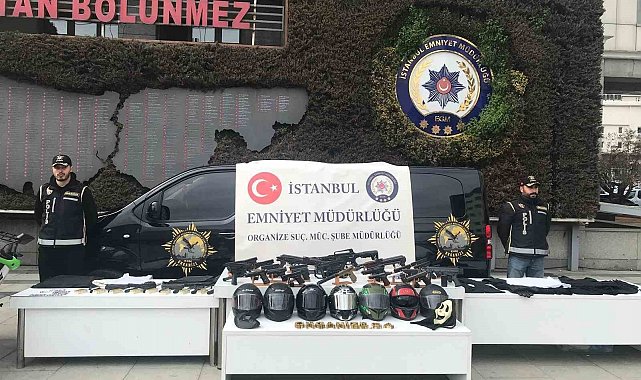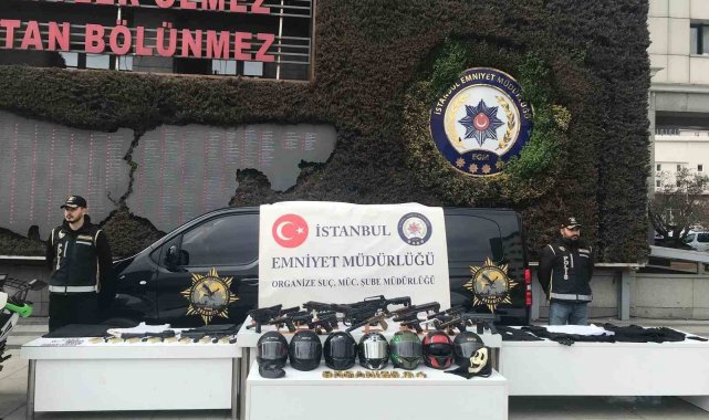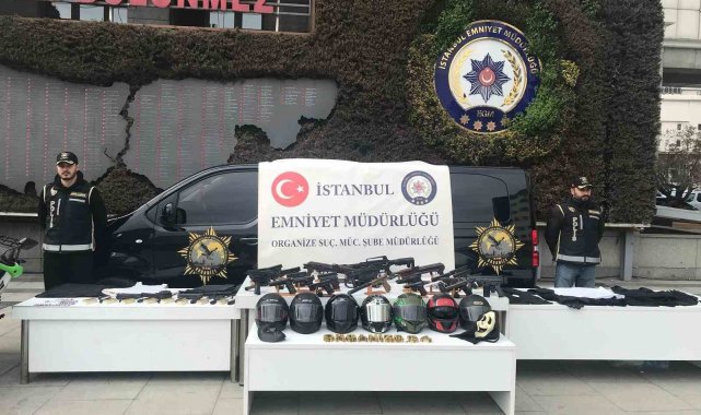 Baskın yapılan adreslerdeki aramalarda çok sayıda silah, bu silahlara ait mermiler ile suç işledikleri sırada kaçarken kullandıkları çalıntı araç, çalıntı motosiklet, motosiklet kaskları ve balistik çelik yelek ele geçirildi.