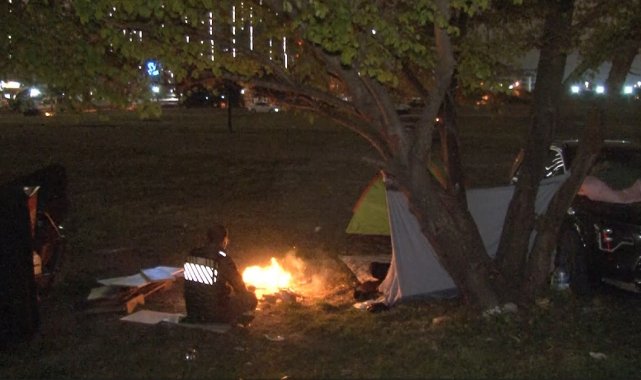 İstanbul'daki 6.2'lik depremin ardından vatandaşlar ikinci günde de parklarda çadırda kalmaya devam etti. Gecenin ilerleyen saatlerinde soğuk havada çadırda kalan vatandaşlar ateş yakarak ısınmaya çalıştı.