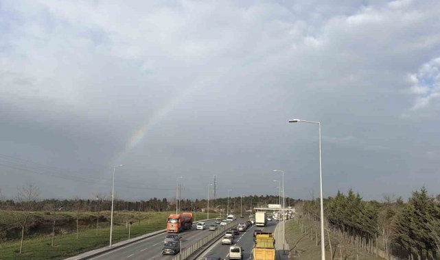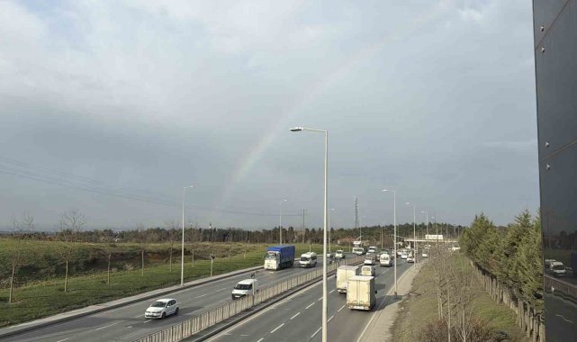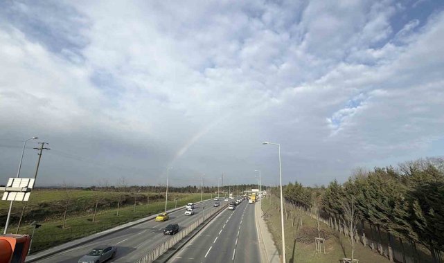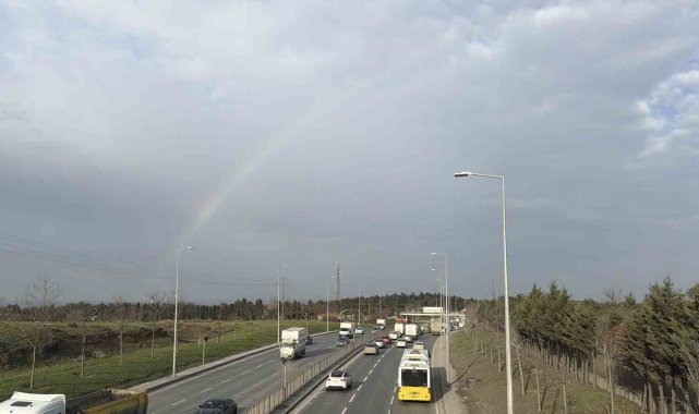 İstanbul'da sabah saatlerinde etkili olan yağmurun ardından gökkuşağı ortaya çıktı. Yağmurun sona ermesiyle birlikte güneşin yüzünü göstermesi sonucu oluşan gökkuşağı, özellikle yoğun trafik akışı sırasında sürücülere kısa süreli de olsa keyifli anlar yaşattı. Bazı sürücüler araçlarını yavaşlatarak, o anları cep telefonu kameralarıyla görüntüledi. Ortaya çıkan manzara, gökyüzündeki renk cümbüşüyle birlikte hem sürücüler hem de çevrede bulunan vatandaşlar tarafından ilgiyle izlendi. Gökkuşağı kısa süre sonra gözden kaybolurken, o anlar geriye güzel görüntüler bıraktı.