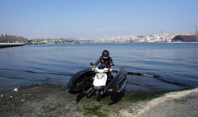 İstanbul'da hem denizde hem karada gidebilen motosiklet yaptı