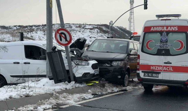 İstanbul Başakşehir'de gizli buzlanma nedeniyle direksiyon hakimiyetini kaybeden ticari araç sürücüsü başka araca yandan çarptı.