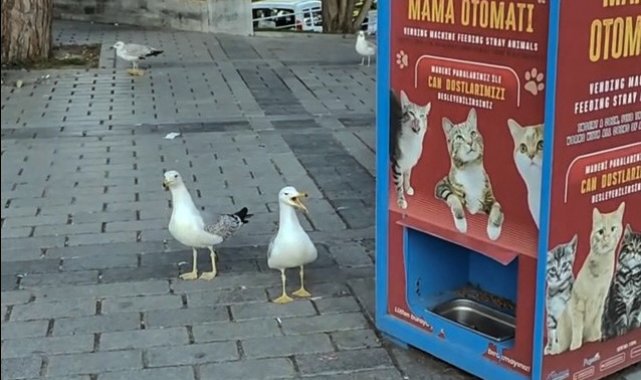 Sultanahmet Meydanı'na kurulan kedi otomatları, yerli ve yabancı turistlerin attığı madeni paralar karşılığında çevredeki kedilere mama veriyor. Sistemi fark eden martılar, mama alabilmek için kedileri taklit etmeye başladı. Turistlere miyavlayarak yaklaşan martılar, böylece otomattan mama alabilmeyi bekledi. O ilginç anlar ise İstanbul'u ziyarete gelen Rus turistin cep telefonu kamerasına yansıdı.