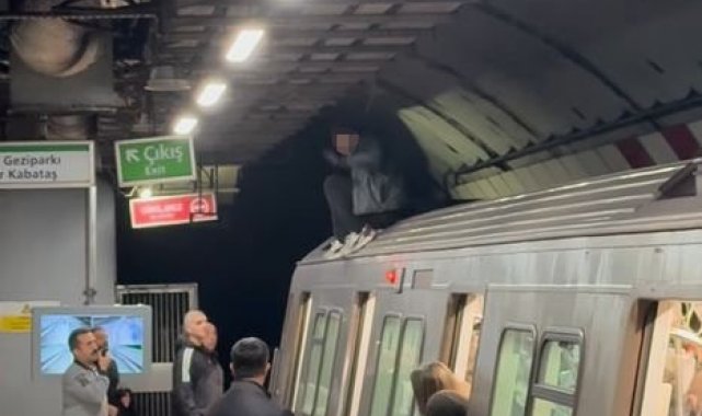 İstanbul'da bir vatandaş, durakta bekleyen metronun üzerine çıktı. Yolcular ve durakta bekleyen vatandaşlar şoke olurken, o anlar cep telefonu kamerasına yansıdı.