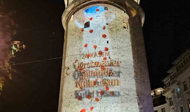 Beyloğlu'ndaki Galata Kulesi'ne Öğretmenler Günü'nün önemini anlatan bir video yansıtıldı. Videoda öğretmenlerin ve öğretmenliğin önemine değinen görsellere "Köklerden Göklere" sözüyle birlikte yer verildi.