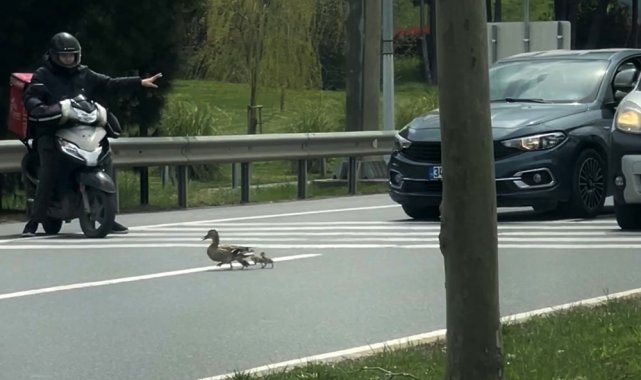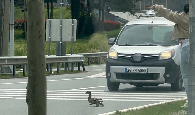 İstanbul'da bir ördek ailesinin karşıdan karşıya geçmesi için duyarlı bir sürücü akan trafiği durdurdu. O anlar trafikteki başka bir vatandaşın kamerasına yansıdı.