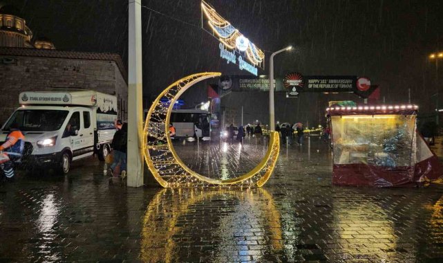 İstanbul'da uyarıların ardından beklenen sağanak yağış etkisini göstermeye başladı. Taksim Meydanı ve İstiklal Caddesi'nde vatandaşların yağmura hazırlıksız yakalandığı görüldü.
