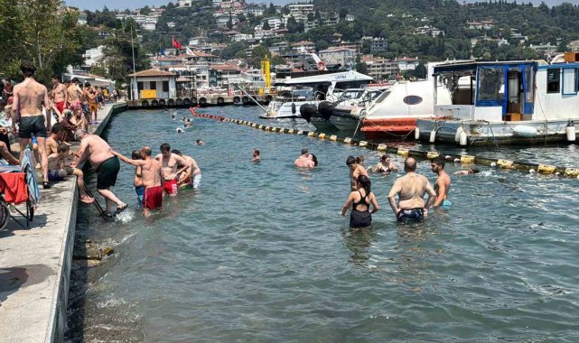İstanbul'da son günlerde yükselen hava sıcaklıkları vatandaşlara zor anlar yaşatıyor. Termometreler 33 derece gösterirken, bunaltıcı havadan etkilenen vatandaşlar, Pazar gününü de fırsat bilerek İstanbul'un sahillerine akın etti. Mega kentin yoğun olan noktalarından Bebek Sahili'nde vatandaşlar denize girerek serinledi.