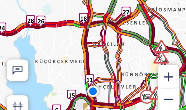 E-5 Karayolu'nda, Halıcıoğlu'nda Ankara istikametinde, Beylikdüzü'nde Edirne istikametinde, trafik yoğunluğu yaşanıyor. İstanbul Büyükşehir Belediyesi Trafik uygulamasında saat 18.35 itibariyle trafik yoğunluğunun yüzde 90 olduğu görüldü. Araçlarıyla eve gitmek isteyen vatandaşlar uzun süre beklediği ve trafiğin zaman zaman durma noktasına geldiği görülürken, E-5 Halıcıoğlu mevkiindeki yoğunluk havadan görüntülendi.