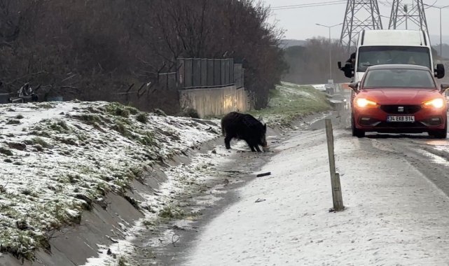 İstanbul'da etkili olan soğuk hava ve aralıklarla görülen kar yağışı, yaban hayatını da olumsuz etkiledi. Yiyecek bulmakta zorlandığı değerlendirilen yabani bir domuz, Hasdal-Kemerburgaz yoluna indi. Yol kenarında bir süre yiyecek yiyen domuz, vatandaşların dikkatini çekti. O anlar, yoldan geçen bazı sürücüler tarafından cep telefonu kamerasıyla kaydedildi. Bir süre yol kenarında kalan domuz, bir süre sonra ormanlık alana girerek gözden kayboldu.
