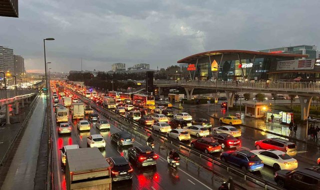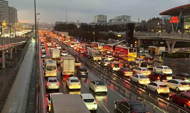 Meteoroloji yetkililerinin uyarılarının ardından megakent İstanbul'da önce şiddetli rüzgar ardından da beklenen yağmur başladı. Yağmurun başlamasıyla birlikte trafik yoğunluğu da arttı. Ana arterlerde uzun araç kuyrukları oluştuğu gözlendi. Trafik zaman zaman durma noktasına geldi. Yenibosna trafik yoğunluğu kameraya yansıdı. İstanbul Büyükşehir Belediyesi (İBB) Cep Trafik verilerine göre ise trafik yoğunluğu saat 18.20 itibariyle yüzde 81'e ulaştı. Taksim'de ise yağmura hazırlıksız yakalanan vatandaşlar zor anlar yaşadı.