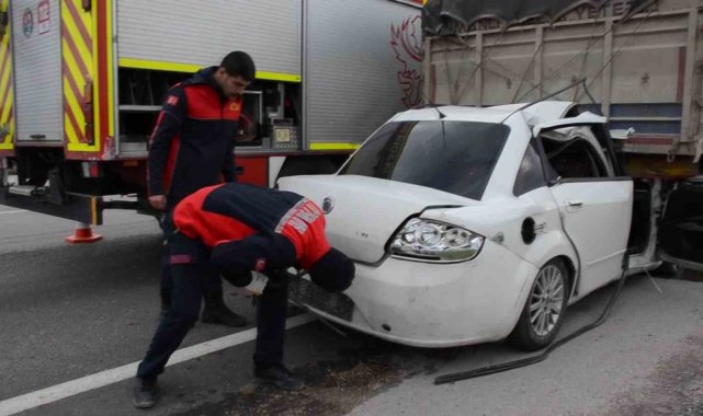 İstanbul'dan memleketleri Ordu'ya cenazeye gitmek için yola çıkan 2 kişinin içinde bulunduğu otomobil Amasya'da tıra çarptı. Feci kazada 2 kişi hayatını kaybetti.