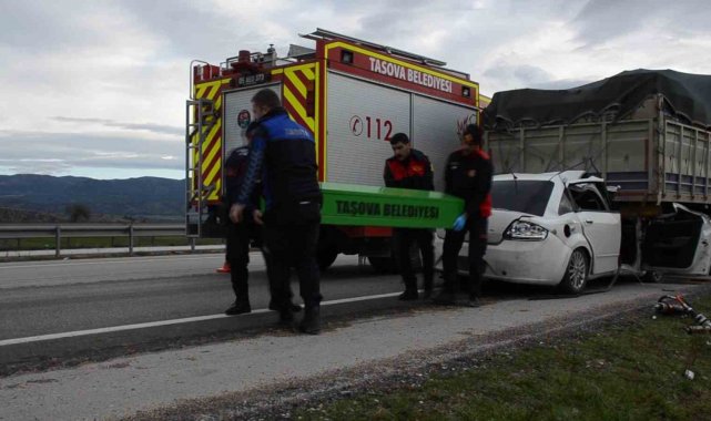 Edinilen bilgiye göre, memleketleri Ordu'nun Kabataş ilçesindeki bir yakınlarının cenazesine gitmek için İstanbul'dan yola çıkan Zafer Bozkurt ve Ümit Çatanak'ın içinde bulunduğu 34 FN 7454 plakalı otomobil, Amasya'nın Taşova ilçesine bağlı Şahinler köyü yakınlarında yola çıkan 32 ADA 465 plakalı tırın dorsesine arkadan çarptı. Dorseye ok gibi saplanan otomobildeki 2 kişi olay yerinde feci şekilde can verdi.