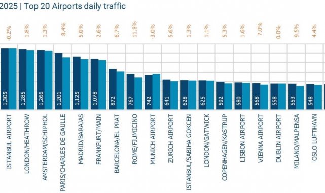 İGA İstanbul Havalimanı, Şubat ayı hava trafik rakamlarına göre, Avrupa'nın en yoğun hava trafiğine ev sahipliği yaptı. Eurocontrol tarafından yayımlanan Hava Trafik Operasyonları Raporu'na göre, 2025 yılı Şubat ayında İGA İstanbul Havalimanı, gerçekleşen günlük ortalama bin 305 uçuş ile Avrupa'daki en yoğun havalimanı oldu.