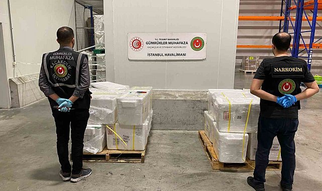 İstanbul Havalimanı Gümrükler Muhafaza Kaçakçılık ve İstihbarat Müdürlüğü ekiplerinin titiz ve kararlı mücadelesi, kaçakçılıkla mücadelede bir kez daha büyük bir başarıya imza atılmasını sağladı. Yapılan teknik analiz ve hedefleme çalışmalarının ardından, yurt dışı menşeili ve ülkemizden transit olarak geçecek bir kargo gönderisi detaylı incelemeye alındı. Uyuşturucu kaçakçılarının; 455,2 kilo ağırlığında kokain cinsi uyuşturucu ticareti için hazırlanan 40 kutudan oluşan kargo gönderisine Gümrükler Muhafaza NARKOKİM ekiplerince el konuldu.