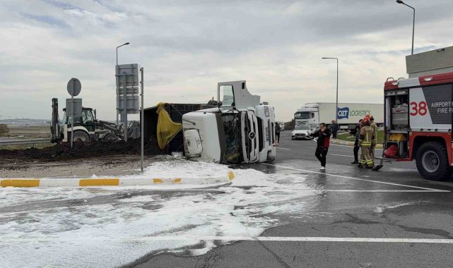 Kaza, İstanbul Havalimanı kargo terminali girişi bağlantı kavşağında meydana geldi. Edinilen bilgiye göre, 34 BC 2445 plakalı gübre yüklü hafriyat kamyonu kavşağa geldiği esnada sürücüsünün direksiyon kontrolünü kaybetmesi sonucu yan yattı. Kazayla birlikte kamyondaki gübre yola saçıldı. İhbar üzerine olay yerine havalimanı itfaiyesi, polis, jandarma ve güvenlik ekipleri sevk edildi. Yaralanan sürücü, olay yerindeki ilk müdahalenin ardından ambulansla hastaneye kaldırıldı. Kaza nedeniyle yolun bir kısmı trafiğe kapatıldı. Havalimanı güvenlik ekipleri ve trafik polisleri, bölgede kontrollü trafik akışı sağladı. İş makineleriyle yola dökülen gübre temizlenirken, itfaiye ekipleri de devrilen araçta güvenlik önlemi aldı. Kaza ile ilgili inceleme başlatıldı.