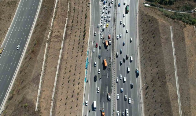 İstanbul TEM Otoyolu Akşemsettin Viyadüğü üzerinde cam damacana su taşıyan kamyon önündeki araca çarparak kazaya karıştı. Kamyonun kasasından düşen cam damacanalar trafiği kilitledi. Trafik yoğunluğu dron ile görüntülendi.