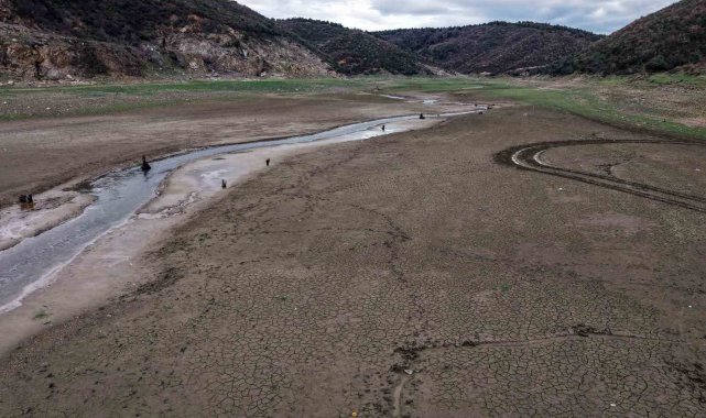 İstanbul'da Sazlıdere Barajında azalan su seviyesi kentin kuraklık ile karşı karşıya olduğunu gözler önüne serdi. Yüzde 16,44 doluluk oranına sahip Sazlıdere baraj havzasında dronla çekilen görüntülerde, yüzlerce metrekare alanın tamamen kuruduğu, toprağın derin çatlaklarla kaplandığı görüldü.