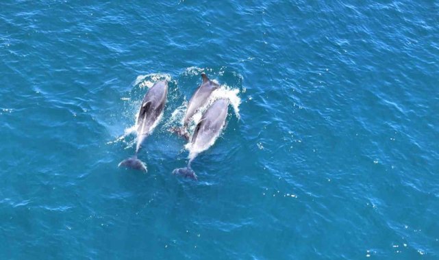 Yaz mevsiminde daha çok görünün yunusların İstanbul'da masmavi denizde dans edercesine yüzdüğü anlar havadan görüntülendi. Yunusların kimi zaman diğer grup üyeleriyle kimi zamanda tek başlarına balık avlarken ortaya çıkardığı manzara belgeselleri aratmadı.