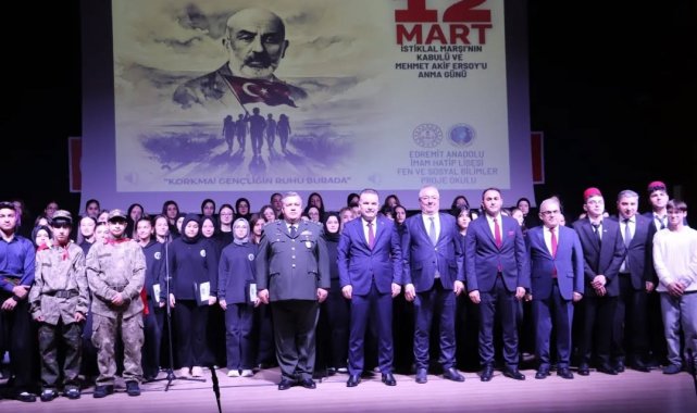 Balıkesir'in Edremit ilçesinde İstiklal Marşı'nın kabulünün yıl dönümü ve Mehmet Akif Ersoy'u anma programı, İlçe Milli Eğitim Müdürlüğü koordinesinde Edremit Anadolu İmam Hatip Lisesi tarafından hazırlanarak Şükrü Tunar Kültür Merkezi'nde gerçekleştirildi.