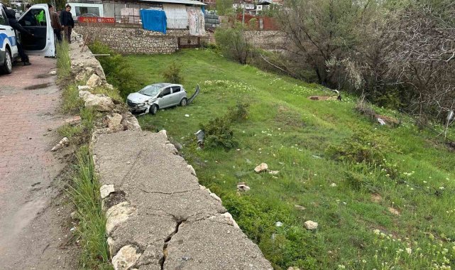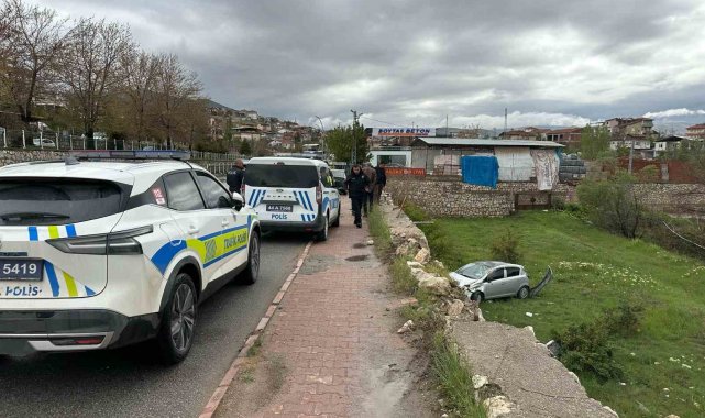 Malatya'da sürücüsünün kontrolünden çıkan otomobil, istinat duvarına çarparak bahçeye uçtu. Kazada 2 kişi yaralandı.