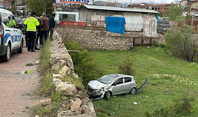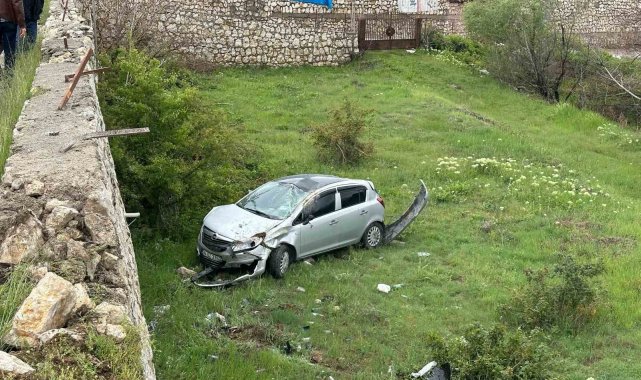 İstinat duvarına çarpan araç bahçeye uçtu: 2 yaralı