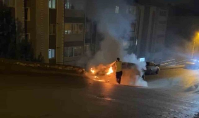 Karabük'te istinat duvarına çarpan otomobilde çıkan yangın, itfaiye ekiplerince söndürüldü.