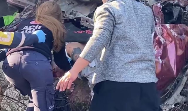 İstinat duvarına çarpan Tofaş hurdaya döndü, araçta sıkışan genç güçlükle kurtarıldı
