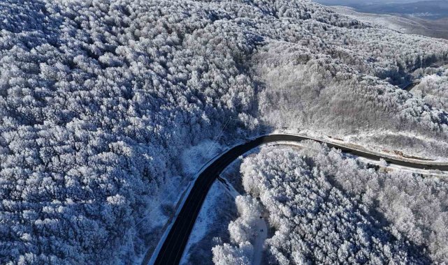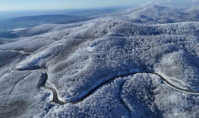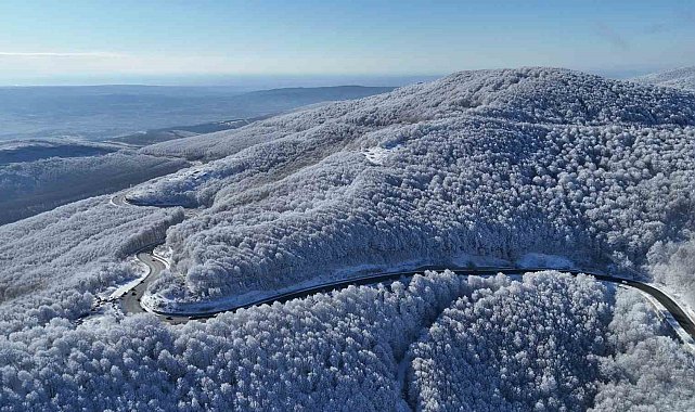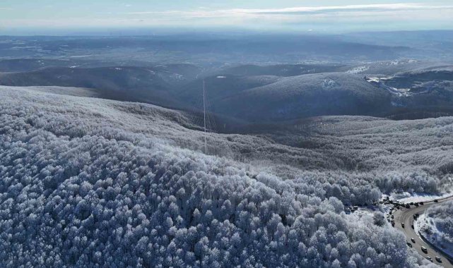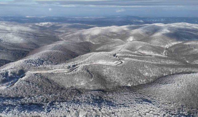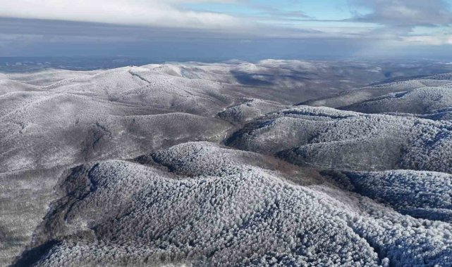 Kırklareli'nde Istranca Dağları'nın yüksek kesimleri, kar yağışı sonrası beyaz örtüyle kaplandı. Ağaçlar üzerinde oluşan kırağı, bölgenin doğal yapısını ortaya çıkardı.